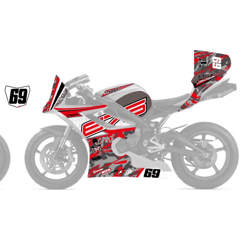 Kit déco pour Triumph 675, personnalisé pour Johan Weizsaeker