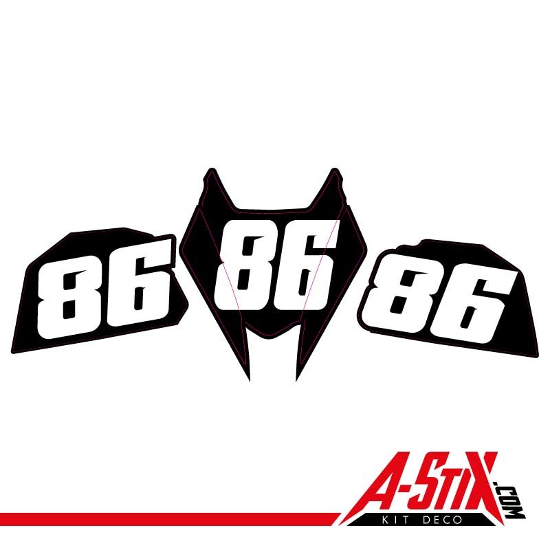 Numéros 86 blanc sur fond de plaque noires. Adaptés pour la déco du 600 CBR
